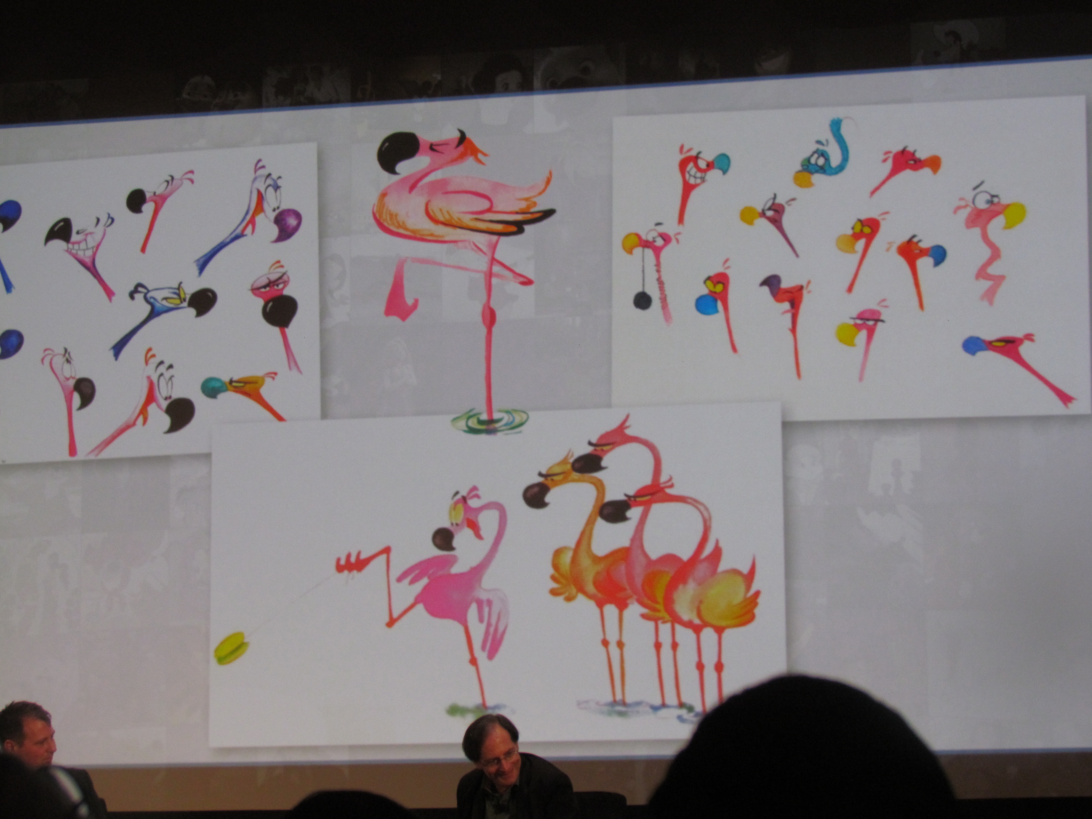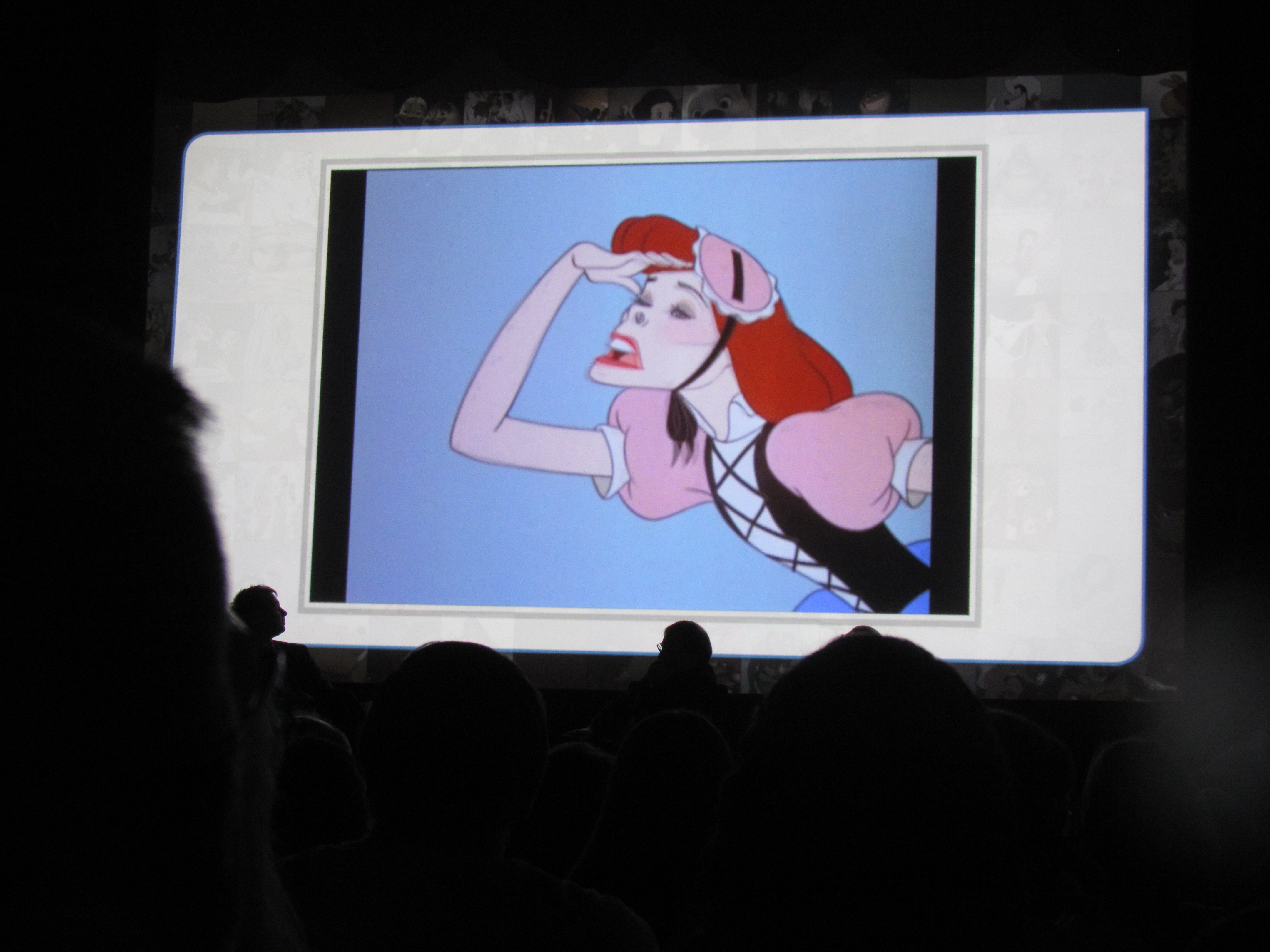 Animator Andreas Deja brought a number of pencil drawings of well-known Disney characters drawn by top animators. His comments were insightful, pointing out where certain poses really showed strength of line, or pointing out various things that make a drawing “work”, but that a non-artist would not likely notice. (One thing that comes across again and again in all these presentations is the tremendous respect that the current animators have for those that preceded them … there is just such a legacy there, and it seems they never lose sight of that and are incredibly respectful of it).