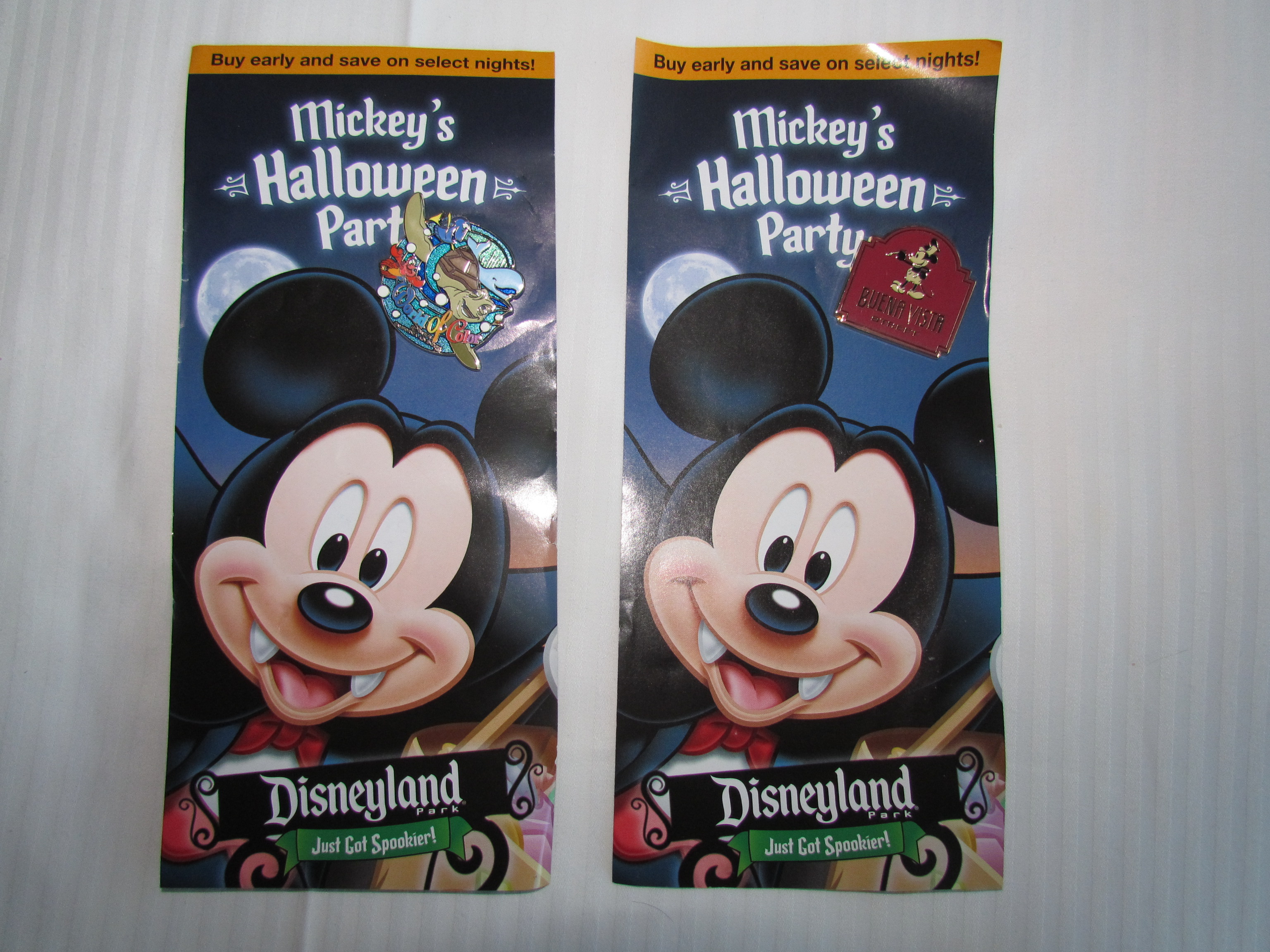 A pin .. the Halloween party flyer was apparently just used as something to stick the pin to. Two of the possible designs shown.