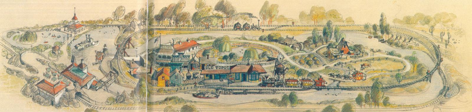 Before sharing all the pictures, I have to mention the most striking exhibit within the pavilion, which is one where no photography was allowed. It was a series of drawings or paintings by some of Disney’s best-known Imagineers, tracing the evolution of the concept of Disneyland. (Although I wasn’t able to take photos in the exhibit, all of these images are available online in some form, so I’m including some images found on the web below).