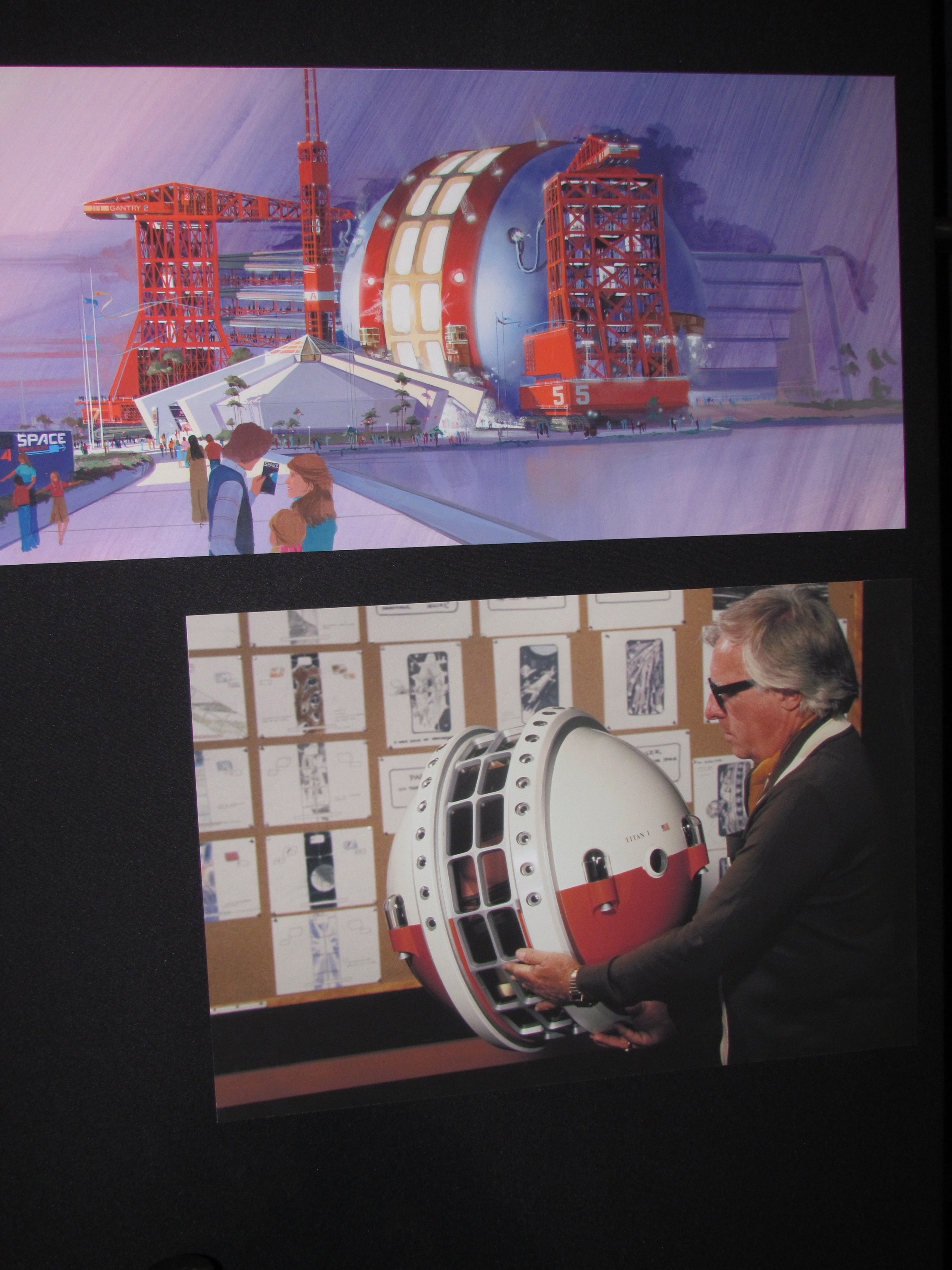 We saw a model of the Space pavilion that has recently been discovered in the archives. (I think — unless this is another manufactured artifact to tie in to the Tomorrowland shenanigans. Who can tell what’s real and what is planted fabrication anymore?)