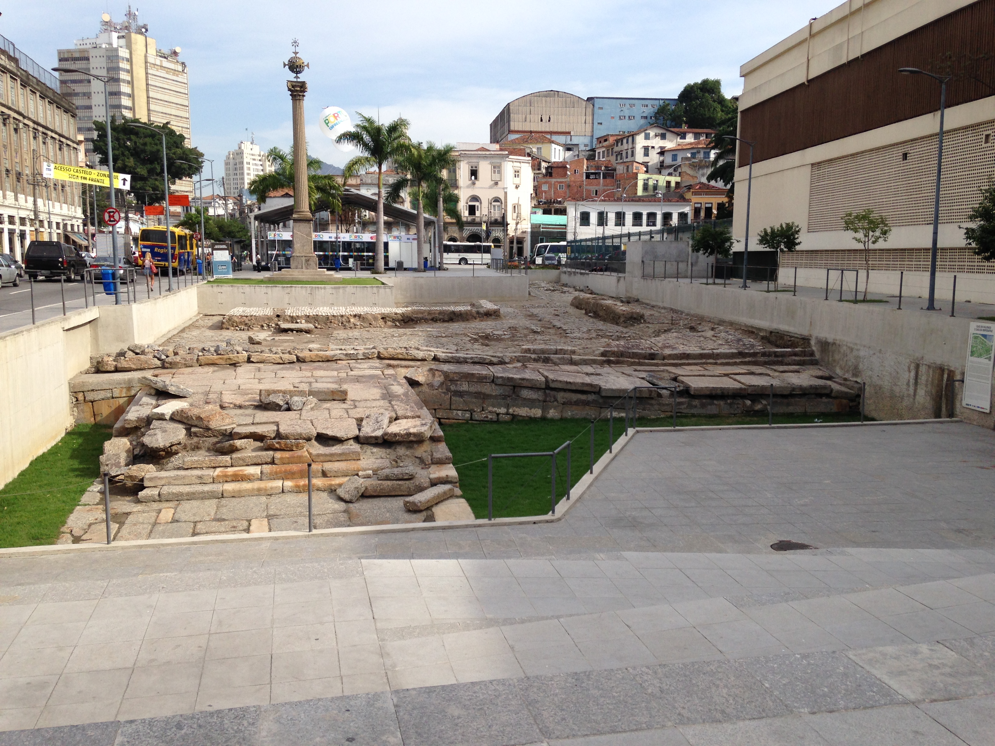 When the royal family moved here, they settled near this port and decided to move the slave trade a few blocks away to Volongo. Volongo became the largest port in the Americas for receiving slaves from Africa – sort of an Ellis Island for slavery. (In addition to African slaves, the Portuguese also tried enslaving the native “Indians” and also imported Japanese slaves, with limited success). This important archaeological artifact was buried under to build new port facilities sometime in the 19th century, and was only re-discovered in 2011. Here are some photos of the first excavation.